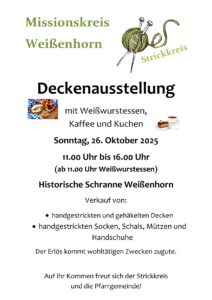 Wir treffen uns am letzten Freitag des Monats von 14.30 – 16.30 Uhr im Augustana-Zentrum, Schubertstr. 20, Weißenhorn.