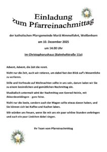 Einladung Pfarreinachmittag 10. Dezember