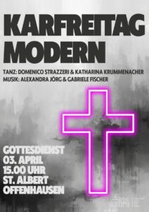 Ein besonderer Akzent liegt auf der künstlerischen Gestaltung. Mit dabei ist der renommierte Tänzer und Choreograf Domenico Strazzeri und Katharina Krummenacher, der mit Ausdruckstanz die Passion Jesu in berührende Bilder übersetzt. Der Tanz wird dabei zur Sprache für das, was Worte oft nicht mehr fassen können: Schmerz, Fürsorge, Abschied – und leise Hoffnung.